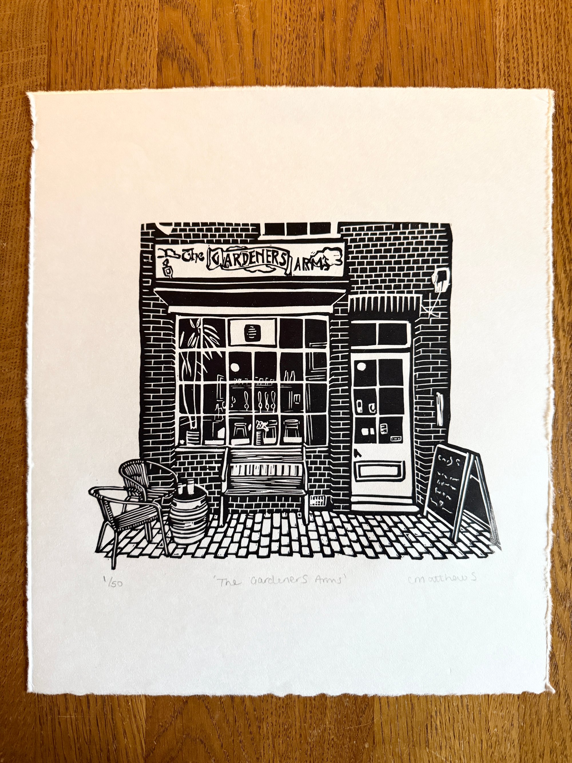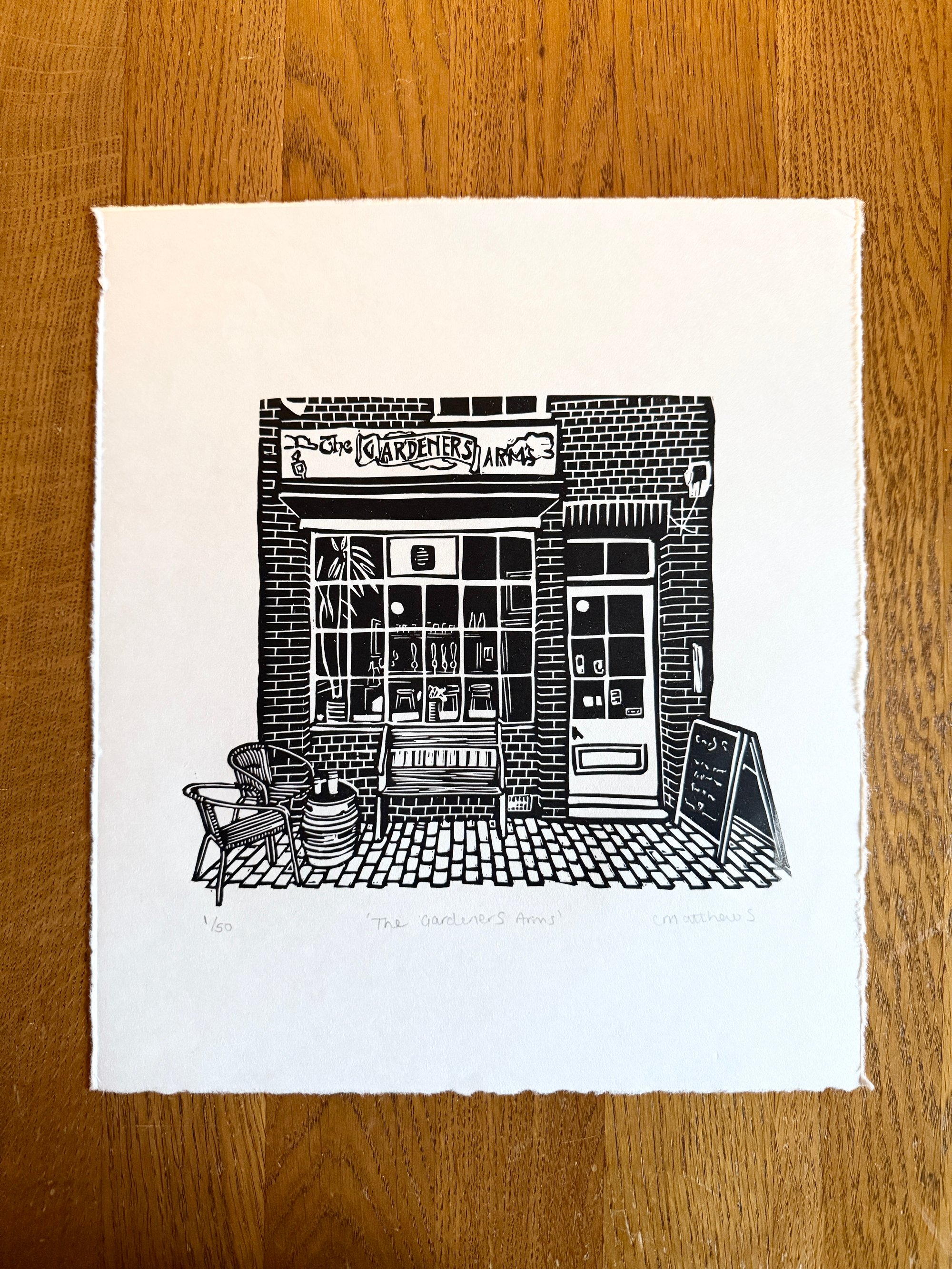 Original lino print, hand printed on hand made Japanese FineArt paper of the smallest public house in Lewes, East Sussex.