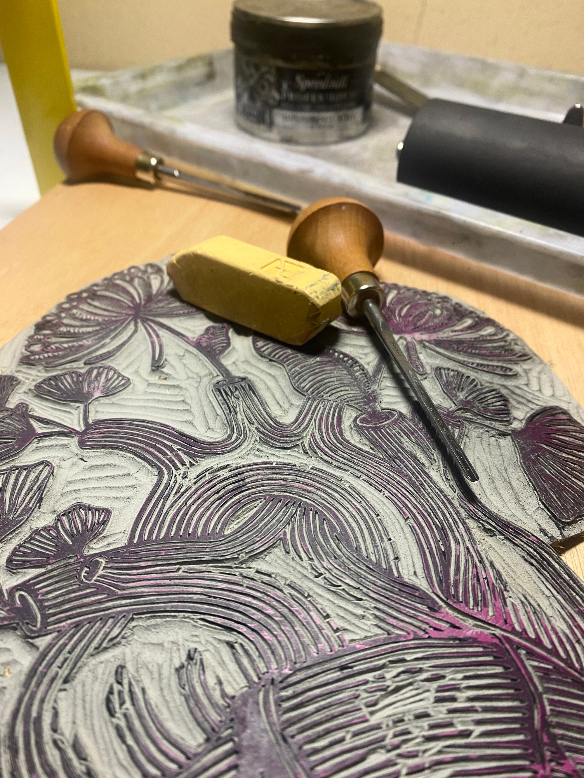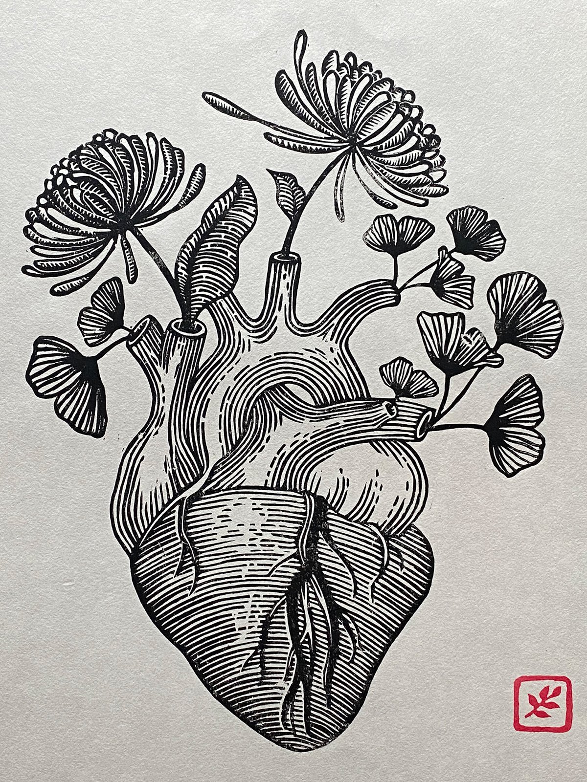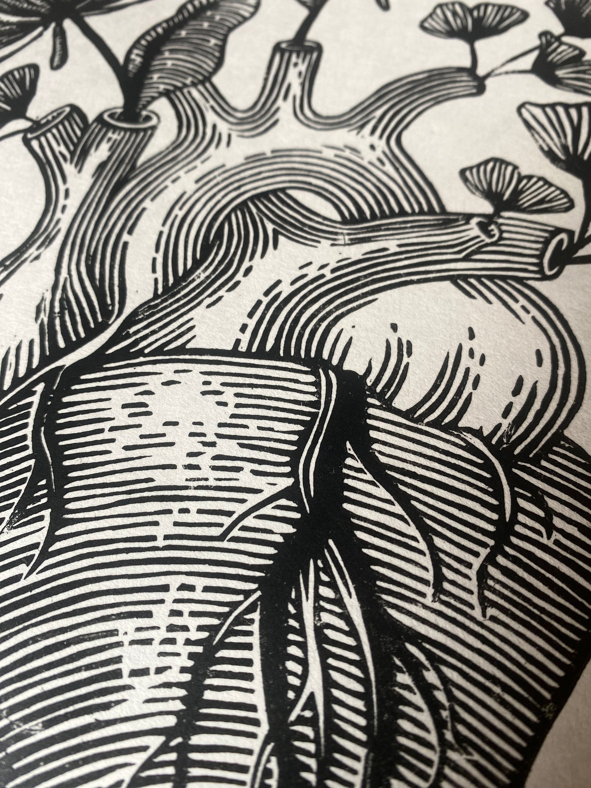 Original lino print, hand printed on traditional Japanese HoSho paper.