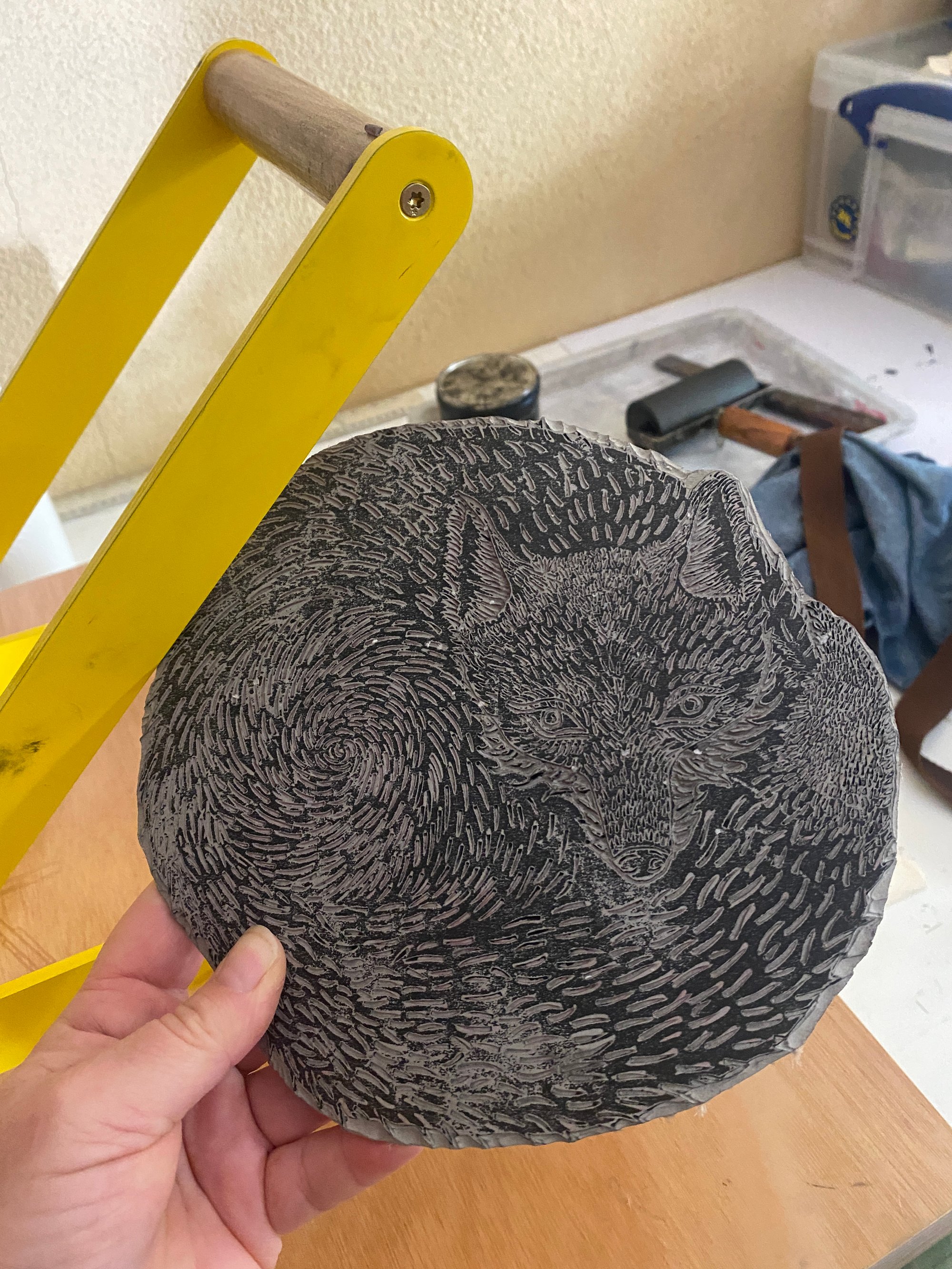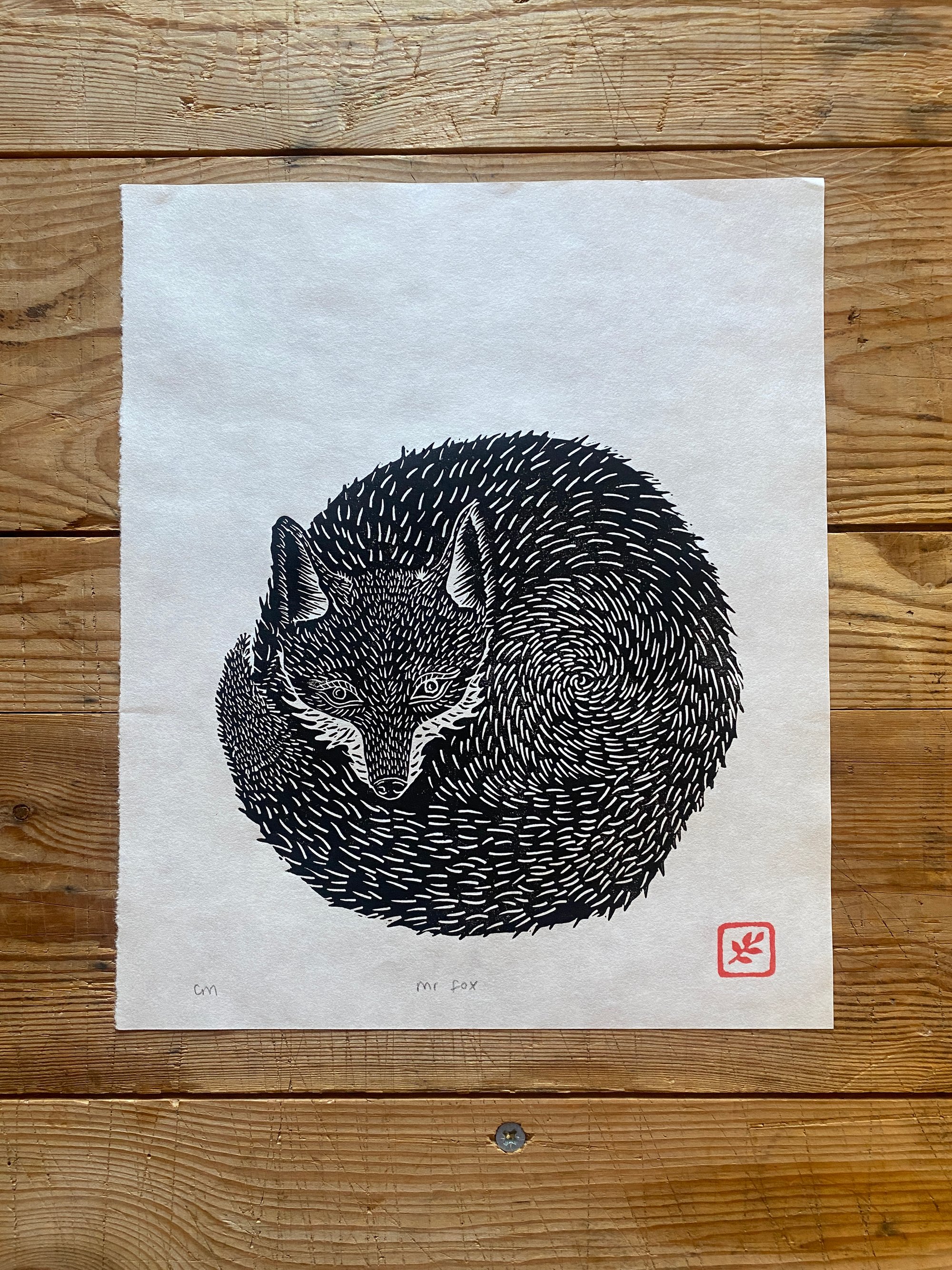 Original lino print, hand printed on traditional Hahnemühle FineArt paper of Mr Fox.