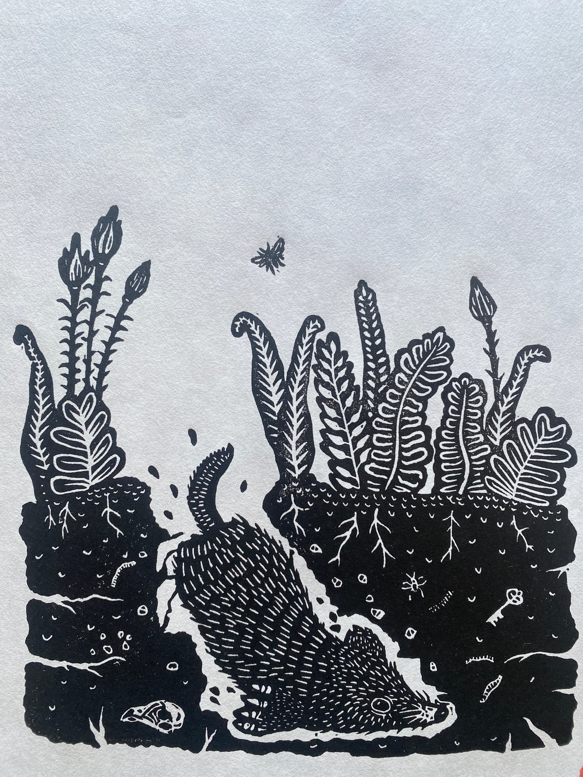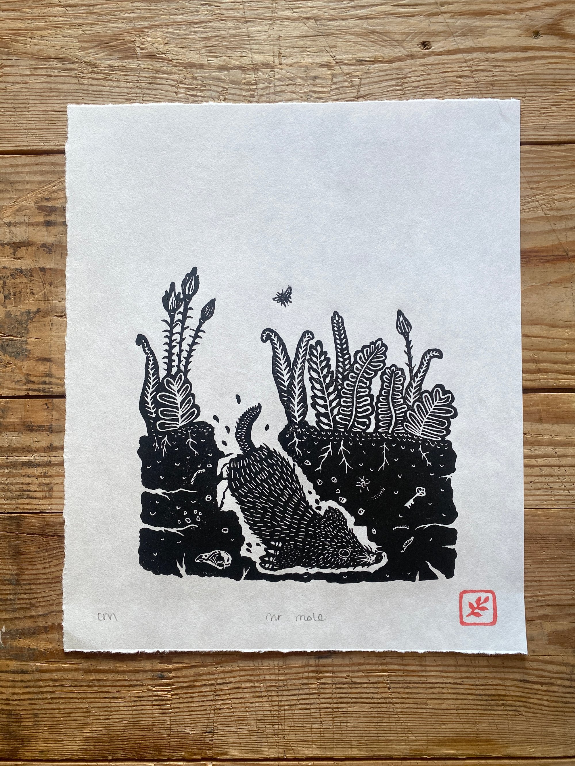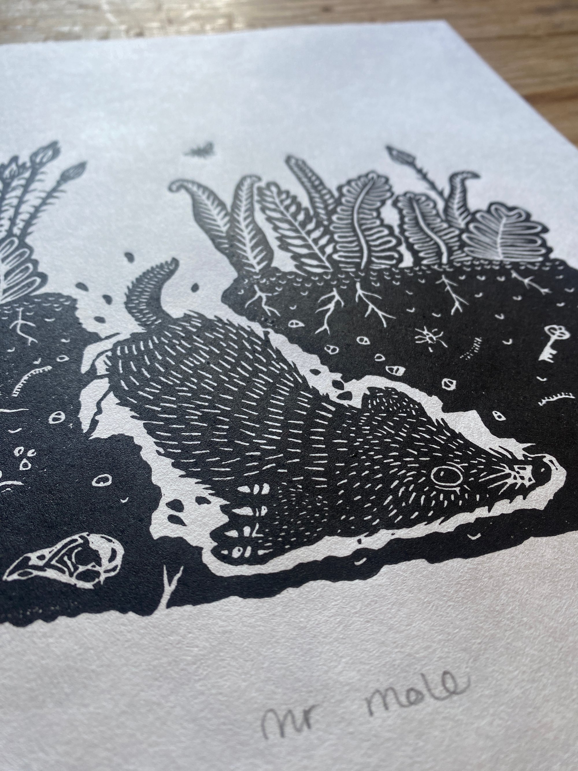 Original lino print, hand printed on traditional Hahnemühle FineArt paper of Mr Mole.